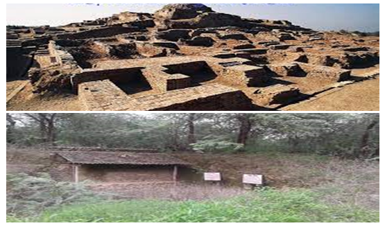 – यहाँ उत्खनन के लिए दो टीलों को चुना गया। ये दोनों टीले सुरक्षात्मक दीवार से घिरे हुए थे।