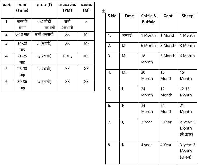 –  पशुओं में निम्न दाँतों को देखकर उम्र ज्ञात की जाती है