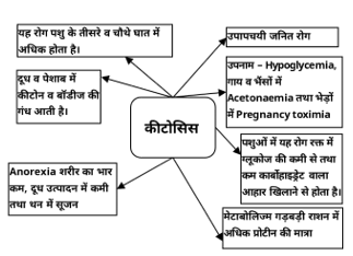 जैसे – विटामिन की कमी (बेरी-बेरी/रिकेट्स/स्कर्वी, रंतोधी), कैल्सियम की कमी (Milk Fever) – दुग्ध बुखार, यूरीन में रक्त (P की कमी)