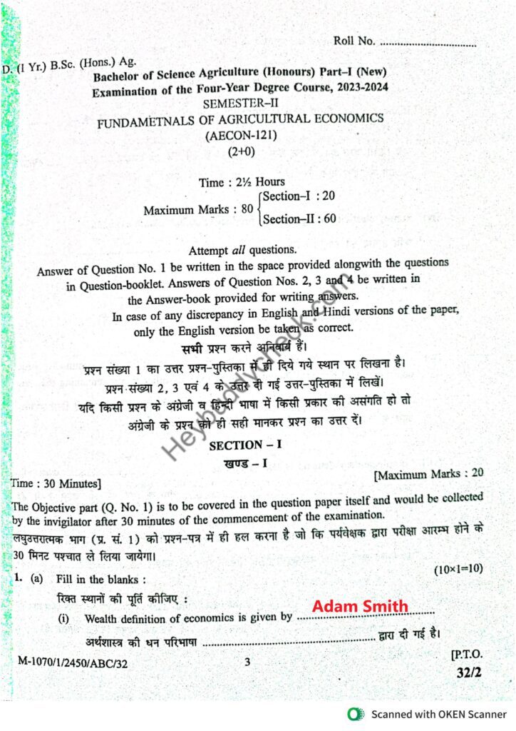 AECON-121 Fundamentals of Agricultural Economics (Old paper) 2023-24 New