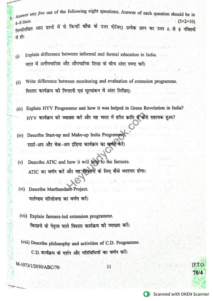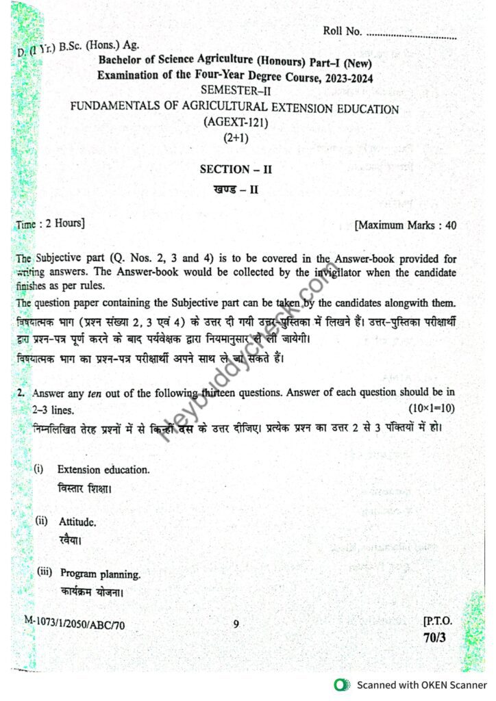 AGEXT-121 Fundamentals of Agricultural Extension Education (Old paper) 2023-24 New
