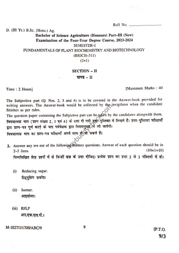 BIOCH-311 (Old paper) Fundamentals of Plant Biochemistry and Biotechnology BIOCH-311 Fundamentals of Plant Biochemistry and Biotechnology (Old paper) HEY Buddy July 20, 2023 1 min read 1