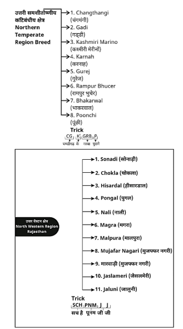 क्षेत्रवार भारतीय भेड़ों की नस्लों का वर्गीकरण :-