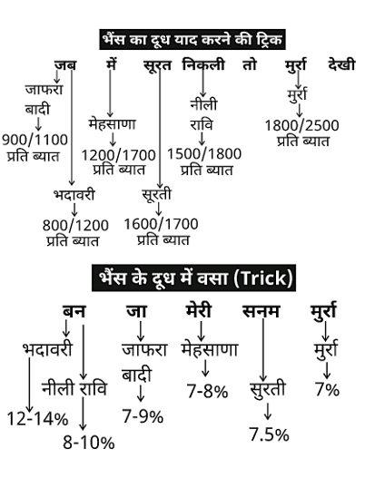 33. सभी भैंसों में सबसे ज्यादा दूध में वसा – भदावरी (12-14%)
