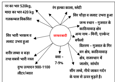 – बन्नी भैंस की नस्ल राजस्थान में बाड़मेर व जालोर जिले में पाई जाती है।