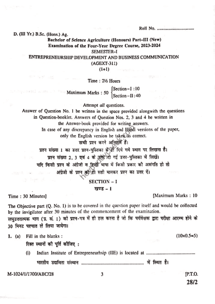 AGEXT-311 Entrepreneurship Development and Business Communication (Old paper) 2023-24 NEW Posted on August 26, 2024August 26, 2024 by Hey Buddy AGEXT-311 Entrepreneurship Development and Business Communication (Old paper) 2023-24 NEW Post Views: 1,356