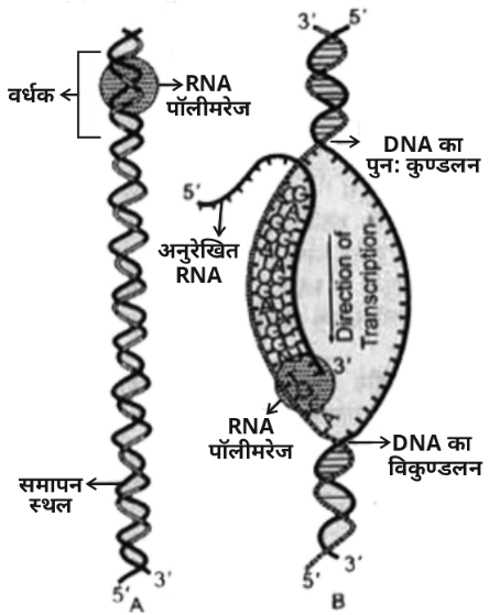– RNA से DNA का निर्माण प्रतीप – अनुलेखन या Reverse transcription कहलाता है। इसकी खोज Temin and Baltimore ने Rous – sarcoma वायरस में की। अतः इसे Terminism भी कहते हैं। इस प्रक्रिया में Reverse Transcriptase या RNA dependant DNA polymerase काम आता है। RNA Template पर बनने वाले DNA को c-DNA या Retroposon कहा जाता है। यह Retroposon, oncogene की तरह व्यवहार करता है।