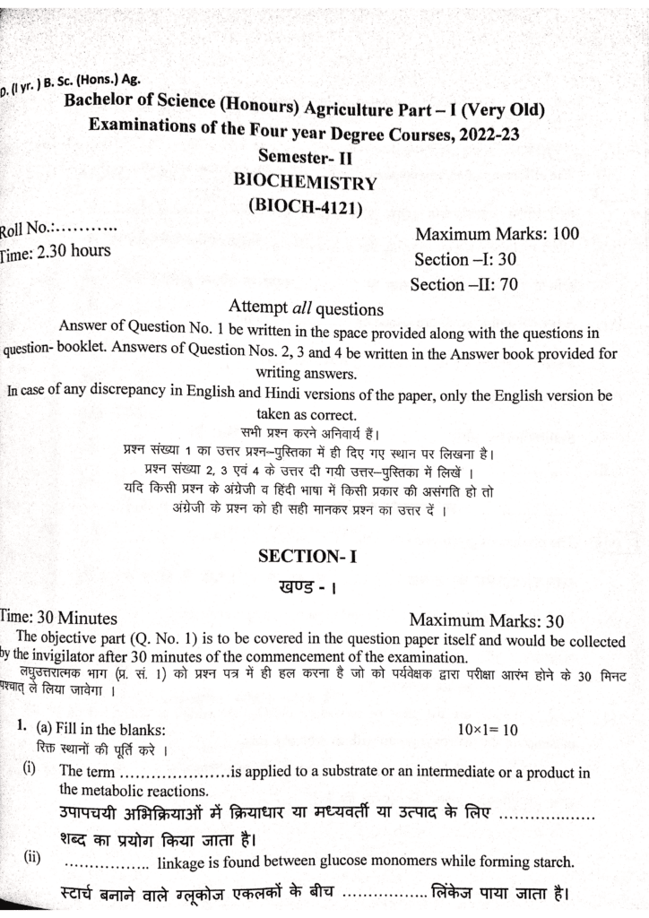BIOCH-311 (Old paper) Fundamentals of Plant Biochemistry and Biotechnology BIOCH-311 Fundamentals of Plant Biochemistry and Biotechnology (Old paper) 2022-23 HEY Buddy August 9, 2023 0 min read 1