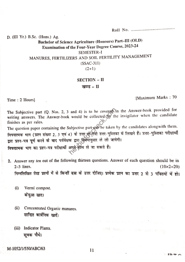 SSAC-311 Manures, Fertilizers and Soil Fertility Management (Old paper) 2023-24 (Old) Posted on December 11, 2024 by Hey Buddy SSAC-311 Manures, Fertilizers and Soil Fertility Management (Old paper) 2023-24 (Old) Post Views: 1,788